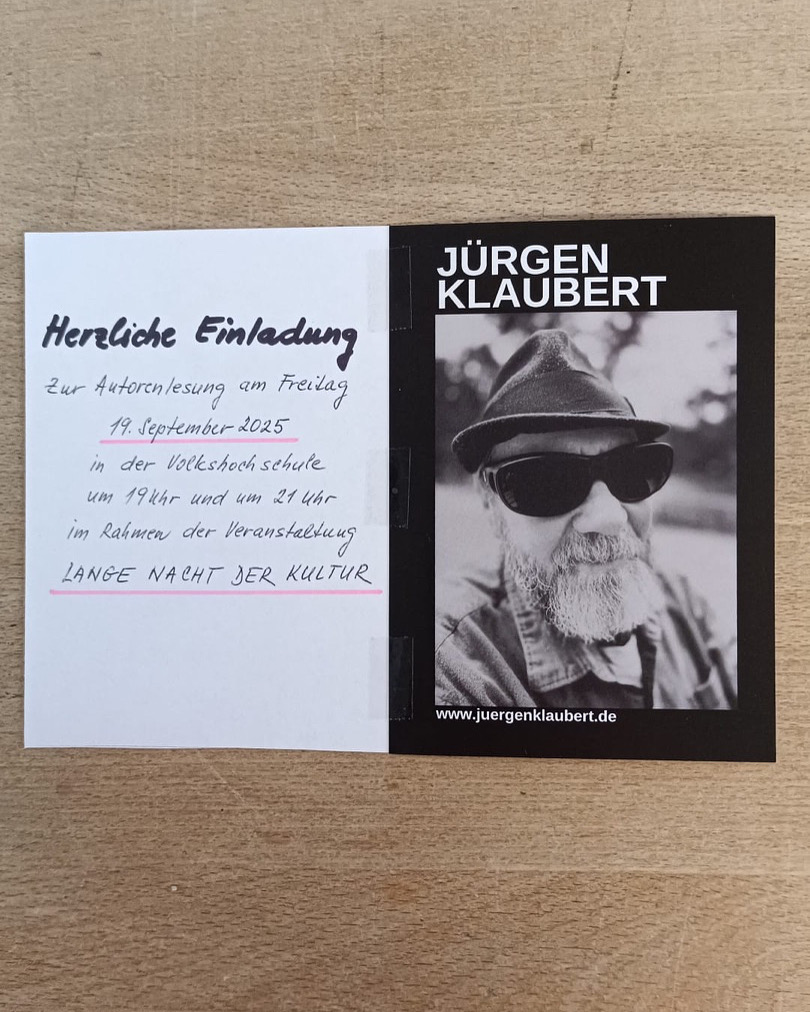 Lesung mit Jürgen Klaubert am 19.September 2025 in Bückeburg